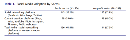 表 1各部门社交媒体采用情况